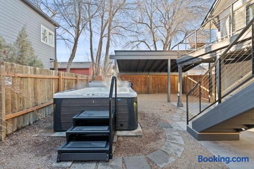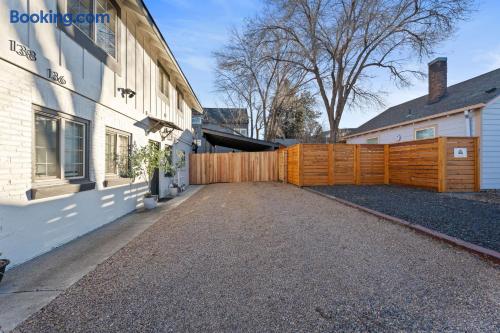 Welcome to your own private spa escape—where historic charm meets modern comfort. Perfect for families, groups, and remote workers with fast 620 Mbps Wi-Fi and a dedicated workspace. Main Living & Comfort: * Cozy main living room with a gas fireplace. * Large-screen LED SMART TV for movie nights. * Split-type ductless AC system for year-round comfort. Gourmet Kitchen: * Fully stocked with stainless steel appliances. * Cuisinart drip coffee maker, bean grinder, and a French press for your morning coffee ritual. Unique Two-Story Layout: * Ground Floor: A private sanctuary with two bedrooms, a full bathroom, a kitchenette, and a living area with a brand-new queen sleeper sofa. Ideal for multi-generational stays or those seeking extra privacy. * Second Floor: The central gathering hub featuring the main kitchen, living and dining rooms, three bedrooms, a loft, and access to the outdoor patio. Private Outdoor Oasis: * Soothing saltwater hot tub. * Relaxing redwood steam sauna. * Gas grill for outdoor cooking. * Secure, gated area for your adventure gear. Family-Friendly Amenities: * Pack 'n play/travel crib. * Children's books and toys. * Children's dinnerware. Parking: 5 dedicated parking spaces (rare for this area!) Sleeping Arrangements: Ground Floor: * Bedroom 1: Queen Bed * Bedroom 2: Queen Bed * Living Room: Queen sleeper sofa Second Floor: * Bedroom 3 (Primary): King Bed * Bedroom 4: Queen Bed * Bedroom 5: Queen Bed * Loft (Bedroom 6): Two Twin Beds (semi-private area)