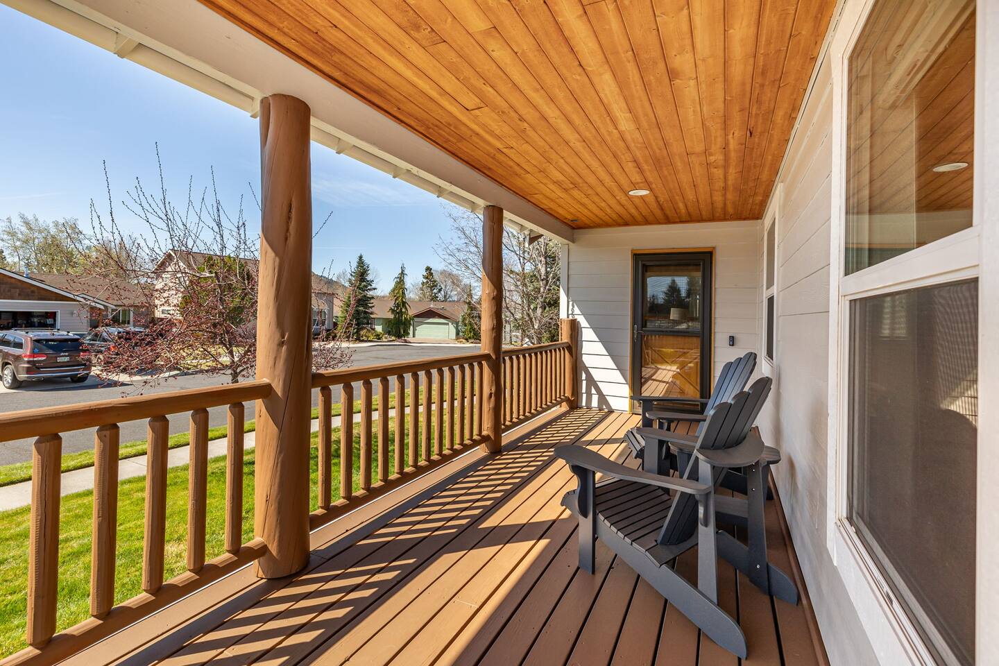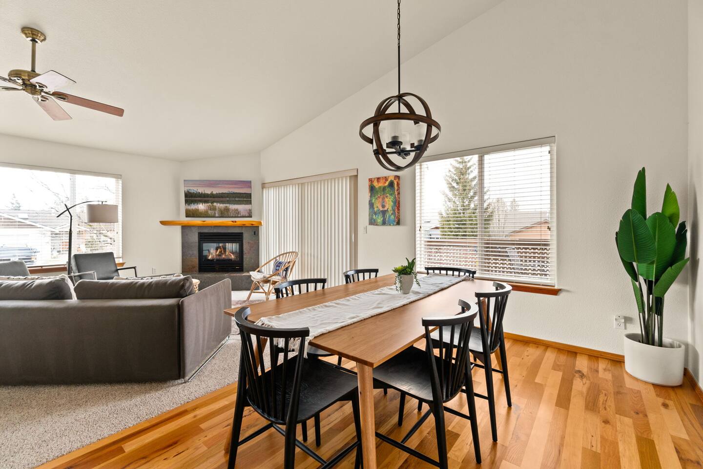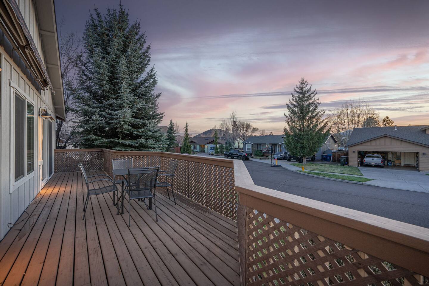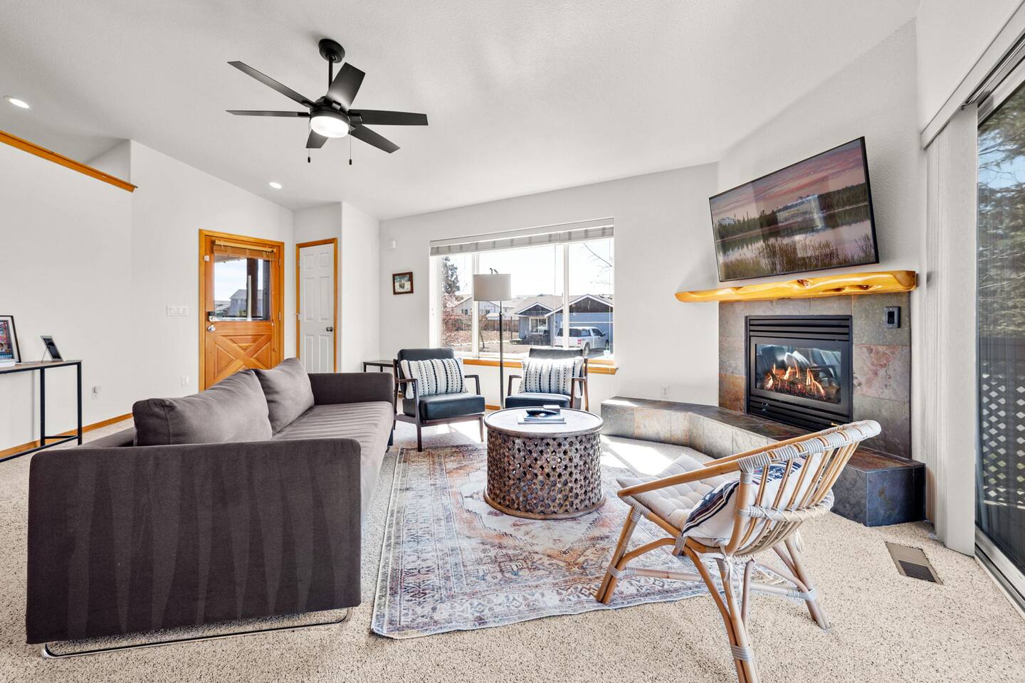 Escape to your modern Bend retreat! This stylish single-level home is bathed in natural light, offering a peaceful and private basecamp for your next adventure. Thoughtfully designed for comfort and relaxation, it's the perfect getaway for families, friends, and their furry companions. Comfort & Climate Control Stay comfortable year-round with central air conditioning and heating, perfect for warm summer days and crisp mountain nights. LIVING AREA - Relax in the open-plan living space, centered around a cozy gas fireplace. - Unwind on the comfortable sofa after a day of exploring and stream your favorites on the large-screen LED SMART TV (personal logins required for Netflix, Amazon Prime, etc.). KITCHEN & DINING - Prepare delicious meals in the fully equipped kitchen, featuring modern stainless steel appliances and ample counter space. - Brew the perfect cup at the dedicated coffee station, complete with a Cuisinart drip coffee maker, bean grinder, and a French press. BEDROOMS & BATHROOMS - Enjoy a restful night's sleep for up to 6 guests across 3 private bedrooms, all appointed with luxury linens. - Refresh in two upgraded bathrooms, one of which features a large jetted tub for a true spa-like experience. OUTDOOR SPACE - Your pets will love the private, fully fenced backyard, offering a secure space to play. - Dine al fresco or simply relax on the patio, furnished with outdoor tables and chairs.